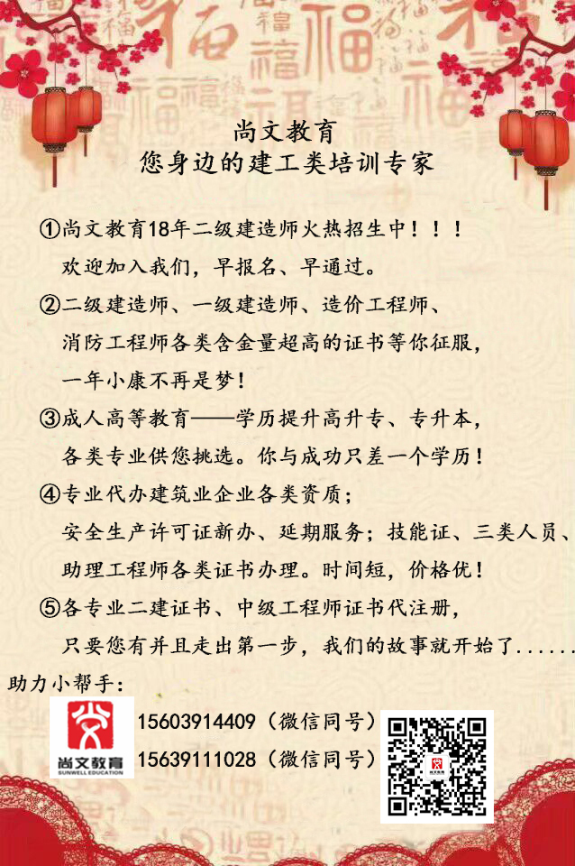 【通知】 2018年二级建造师新旧教材对比已新鲜出炉,新版教材随及面市。 奋斗吧,骚年… 当你左右思虑,瞻前顾后的时候,他人已悄无声息的打好了前战,奠定了基础!!! 电话:15603914409 15639111285 ...