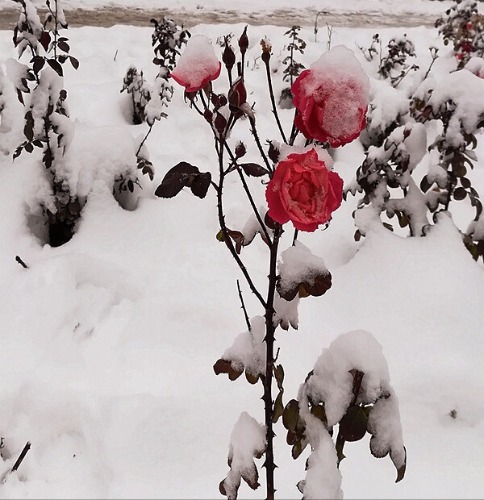 雪天拍月季