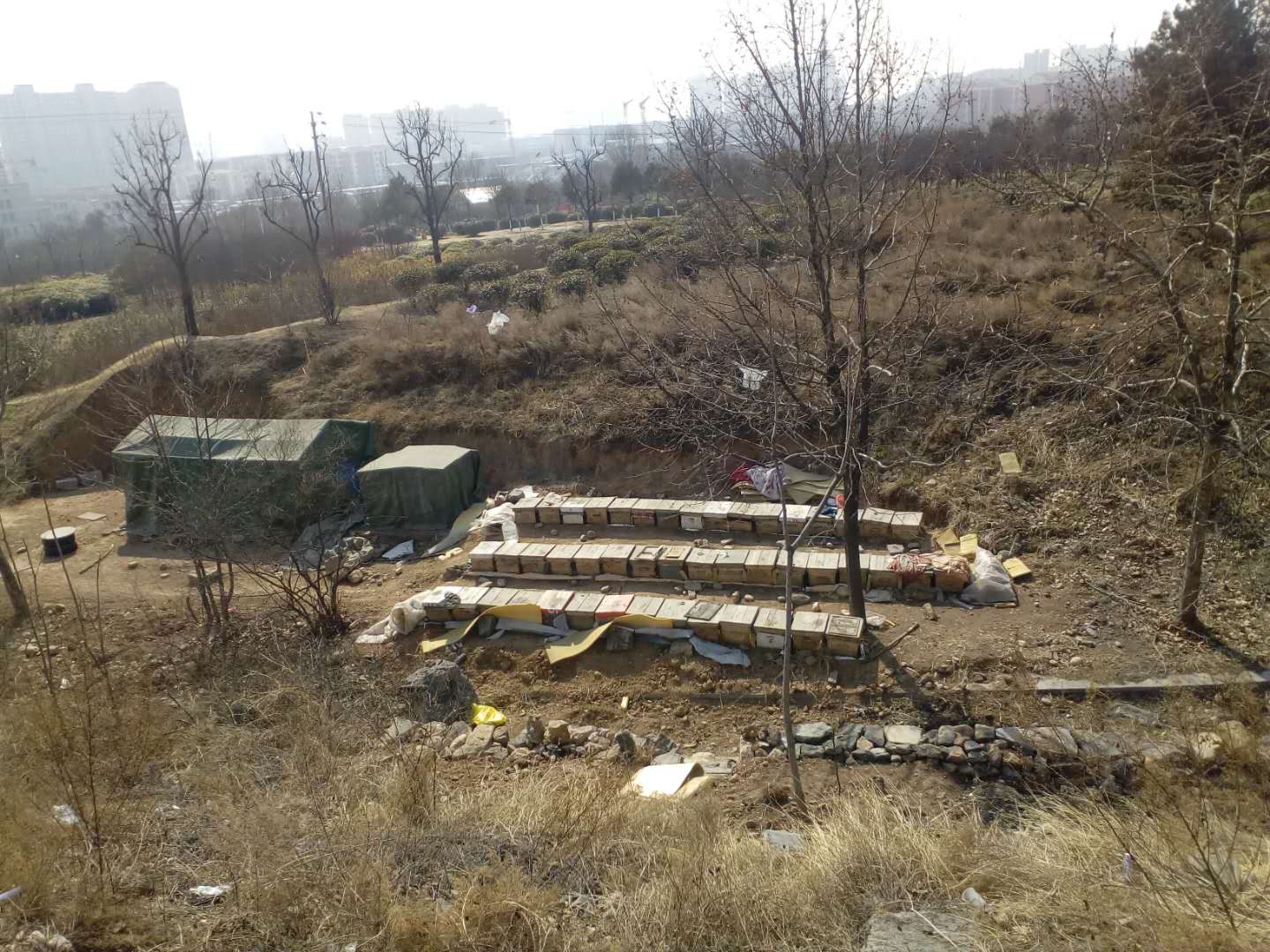昨日和好友一起去登缝山针,路过塔北路,只见到塔北路最北端西侧的园林土山被人为的开挖一片,非常不协调。
