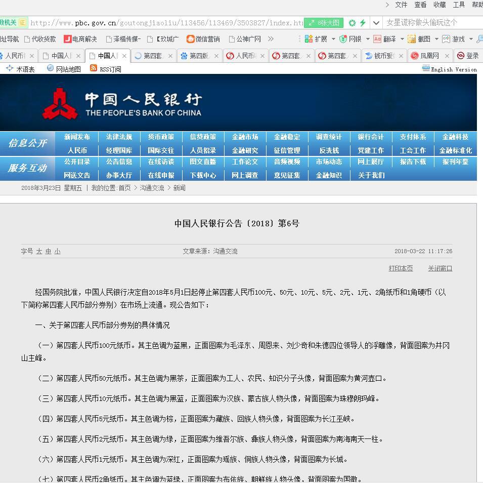 重磅特大好消息第四套人民币退市 人民银行发布公告,第四套人民币五月一号以后退市禁止流通, 现在使用流通中的是第五套人民币,之前有四套人民币,第三套人民币2000年退市,当初其中2元券的市场价格8元左右,一 ...