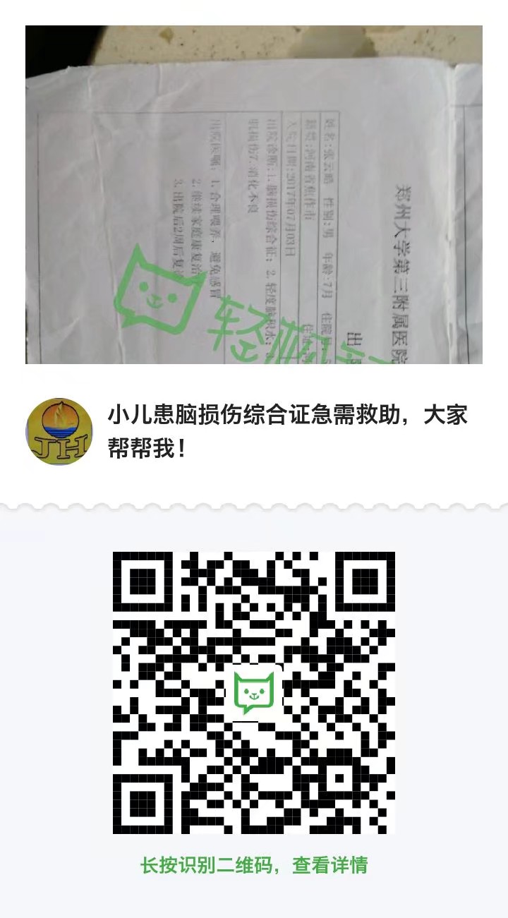 『小儿患脑损伤综合证急需救助,大家帮帮我! - 轻松筹』微信13683715586手机 大家好,我是张辉辉(曾用名张百颇),孩子的父亲,家住洛阳市宜阳县张午乡程午村。 我的宝贝皓皓,生于2016年11月,户籍随母亲 ...
