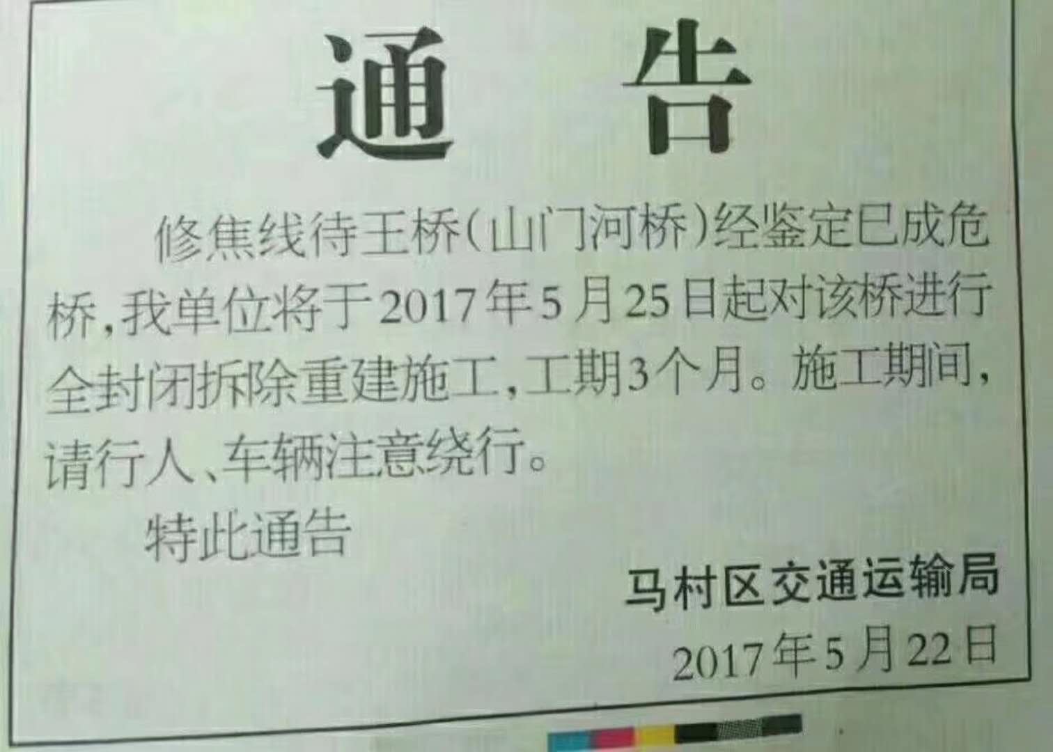 本帖最后由 乔洛小熊 于 2018-5-23 08:25 编辑 焦作最难产的桥在哪里,一路向东,在待王——去年的今天,马村区交通局在焦作晚报上登报声明,焦修线上的待王桥(山门河桥)拆除重建,工期为三个月,三个月,三个 ...