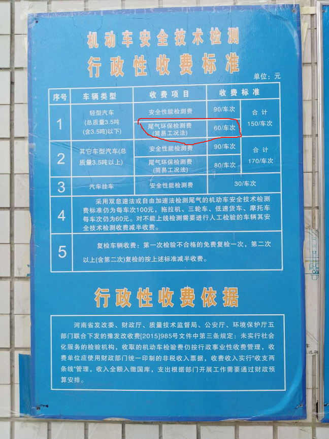 | 焦作验车多收100元环检费用,许许多多老百姓都蒙在鼓里,相关部门装着不知道,告诉你吧郑州早就取消啦,我每年都是利用去郑州办事的机会,在郑州检测,价格总计150元,谁不相信,可以打电话问问,或者去郑州试试 |