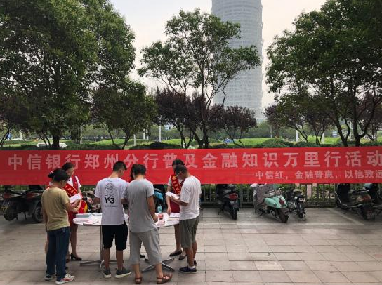 中信银行郑州分行开展“普及金融知识万里行”活动 为加强公众金融知识宣传教育,帮助银行消费者增强金融素养和金融安全意识,6月30日,中信银行郑州分行开展了“普及金融知识万里行”活动 ...