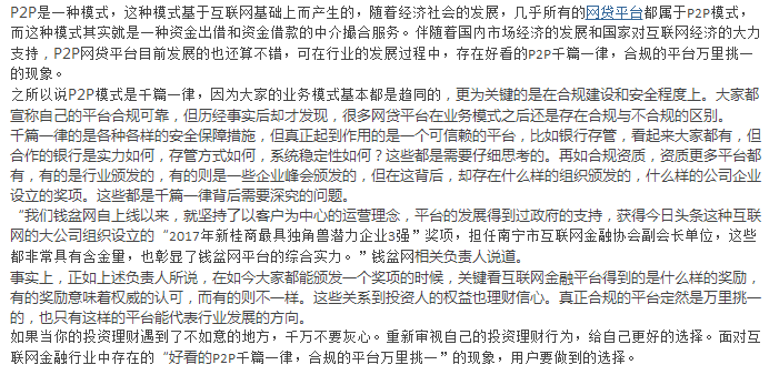 好看的P2P千篇一律,合规的平台万里挑一 ...