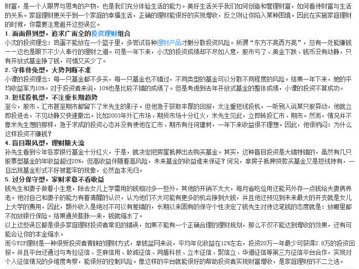 家庭理财五大误区,想增收就得要避开! ...
