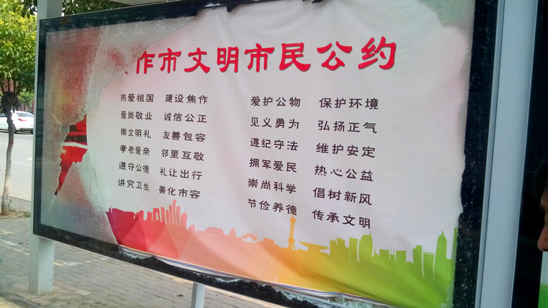 今天中午,位于工业路上的轮胎厂家属院南门公交站牌,被歹徒下毒手,背面厚约10毫米的玻璃被击得粉碎,图片是下午3点时的情形: