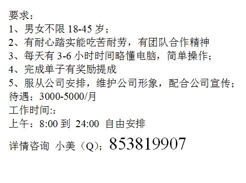 公司夏季拓招,随时可应聘