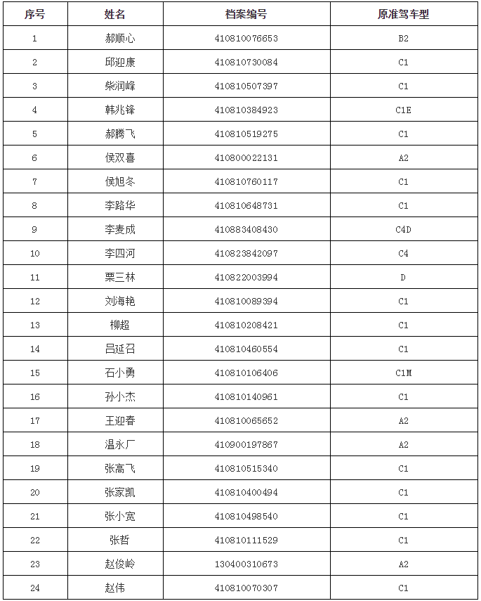 为进一步震慑交通违法行为,营造良好的交通安全环境,焦作市公安交通管理支队现公布2018年上半年终生禁驾人员名单。此次公布的被终生禁驾的24人,均是按照《中华人民共和国道路交通安全法》相关规定,在被依法追究刑 ...