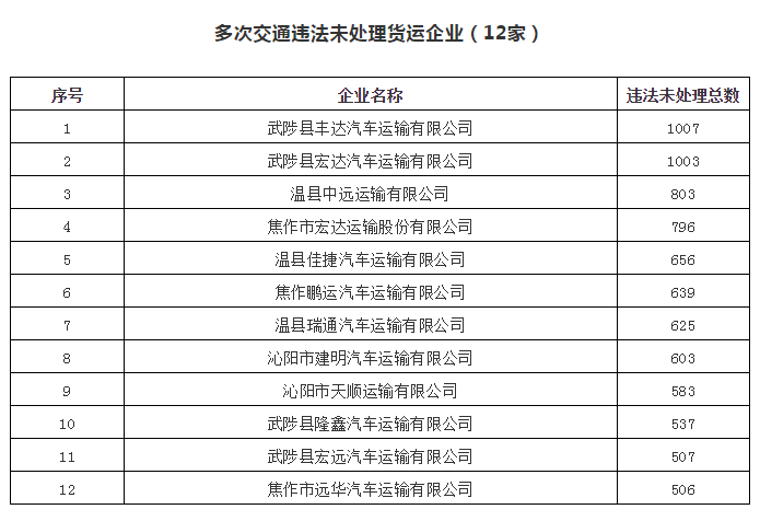 2018年上半年多次交通违法企业、车辆曝光台 ...
