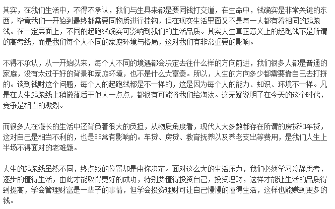 人生不应输在起跑线,理财赚钱该是常态 ...