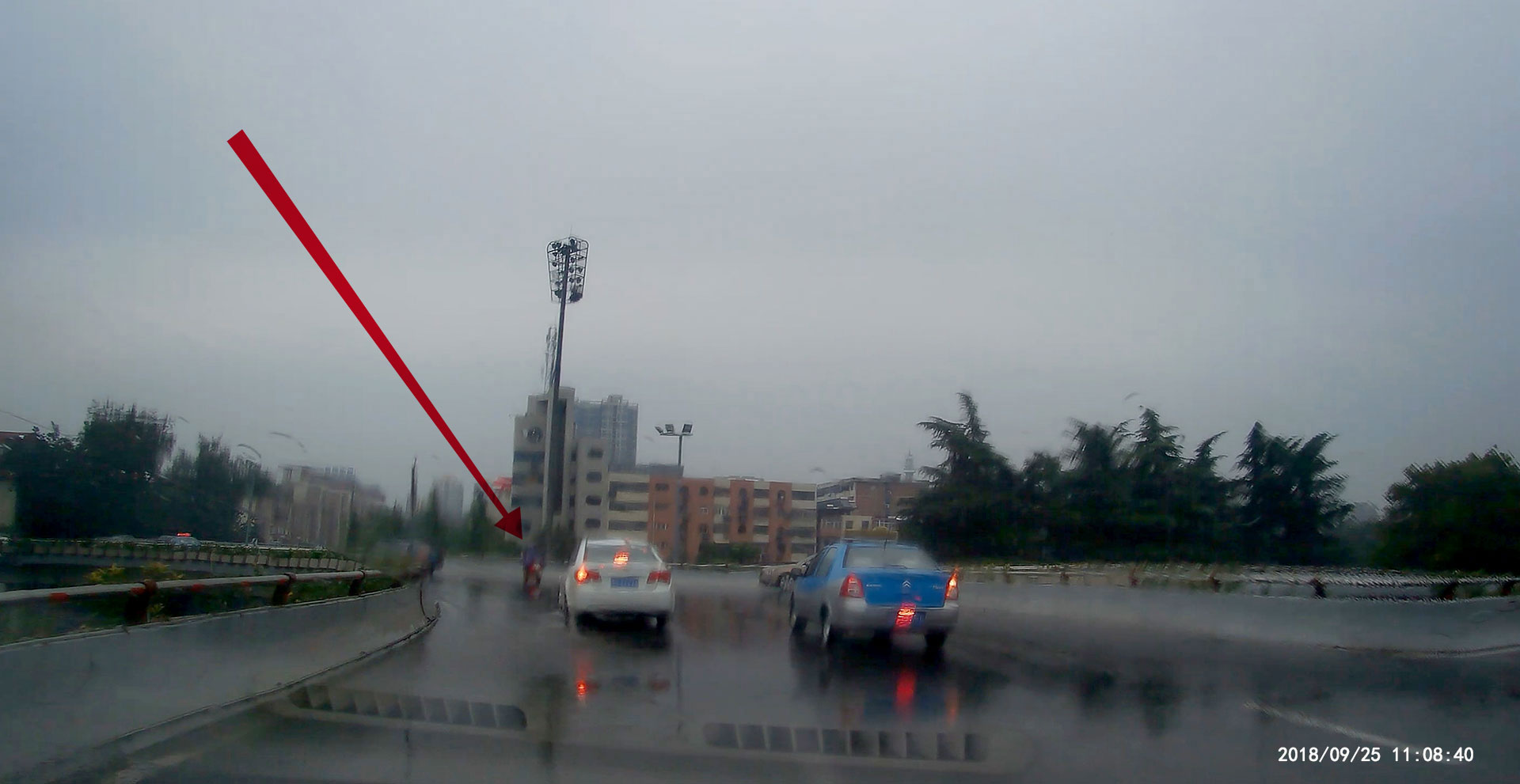 今天雨,万方桥上遇到疑似骑电动车的人,感觉很危险哦。