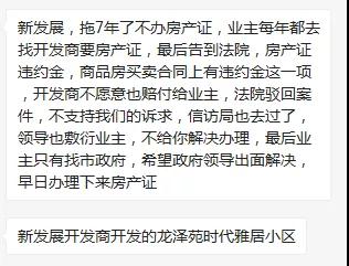 | 不用生气。还有更赖的亿祥东郡二期都快十年了,业主的房产证还在镜子里。业主告到省政府也没用,,人家有大后台。 |