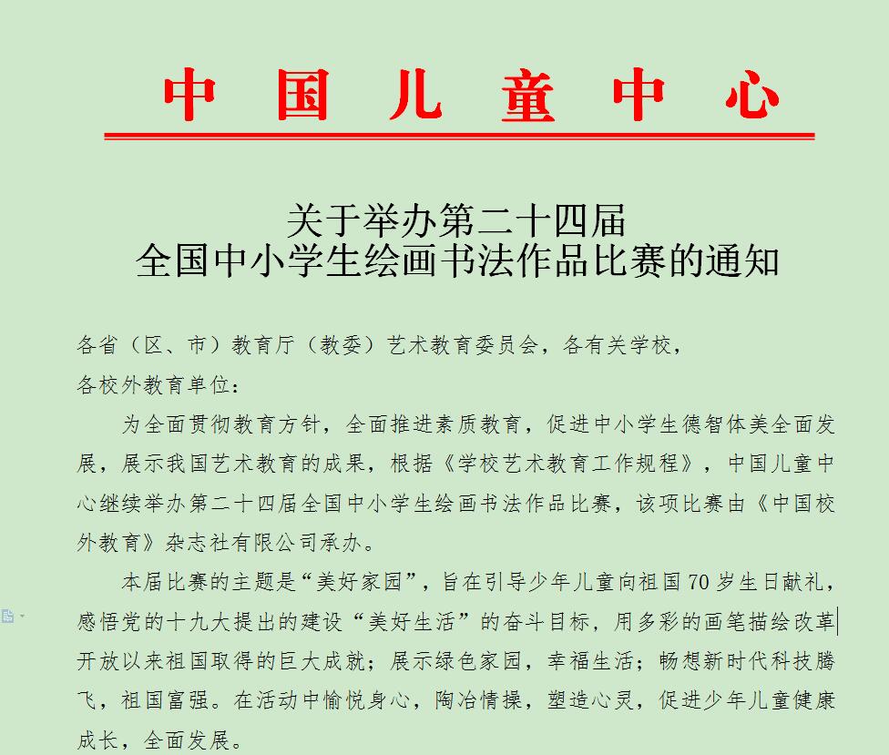 2019年全国中小学生绘画书法作品比赛招募河南赛区合作伙 ...