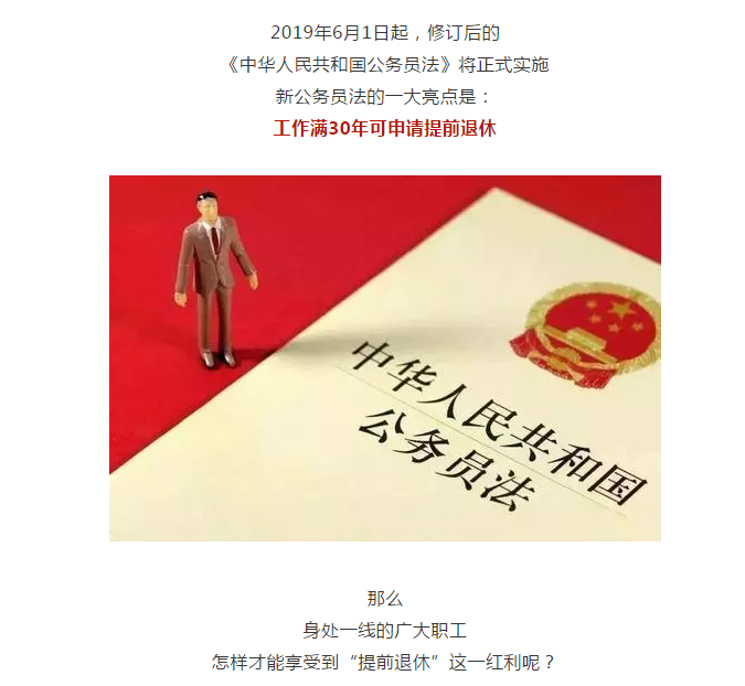 公务员工作满30年可提前退休 2019年04月02日 13:06:06 来源:每日经济新闻 1122人参与64评论 “大哥,从小到大,从入托、上学到参加工作,从来都是你领先我,不过没想到吧,只要单位能批准,今年没准儿我还能比你先退休呢。”——张二哥笑着对大哥说。 张家大哥今年59岁,是一家国有企业的工程师,将在明年退休。而张家二哥则是一个行政机关的处级干部,今年还不到56岁,但已参加工作满30年。 新的公务员法于2018年12月29日经第十三届全国人民代表大会常务委员会第七次会议修订,并于2019年6月1日起实施。 新公务员法在第九十三条中提出,公务员符合下列条件之一的,本人自愿提出申请,经任免机关批准,可以提前退休: 一是工作年限满30年; 二是距国家规定的退休年龄不足5年,且工作年限满20年; 三是符合国家规定的可以提前退休的其他情形。 按照现行满6岁可以上小学的规定,一般情况下,通常能在22岁左右大学本科毕业,25岁左右研究生毕业,25岁左右考入公务员队伍参加工作的情况并不少见。按照新的公务员法,意味着相当一部分人在55岁左右就可以申请提前退休。 公务员提前退休仍能享受到一定的福利待遇。新公务员法明确,公务员退休后,享受国家规定的养老金和其他待遇,国家为其生活和健康提供必要的服务和帮助,鼓励发挥个人专长,参与社会发展。 这样的规定,对公务员来说是不是一种福利呢?公务员提前退休的意愿强不强呢?记者选择了部委、省、市等各级公务员展开小范围采访调查,结果发现:有人拍手叫好;也有人坚持不会提早退休。 观点一:可以留出时间多陪家人 已经是某部委正处级干部的汪芳(化名)前不久刚申请了退休,正在等待批准。 汪芳向每日经济新闻(微信号:nbdnews)记者介绍,自己工作已经满30年了,年龄刚好是55岁,已经提交退休报告了,正在等待批准,不过并不清楚自己能否获批。 2015年3月,中组部、人社部下发通知,明确党政机关、人民团体中的正、副县处级及相应职务层次的女干部,事业单位中担任党务、行政管理工作的相当于正、副处级的女干部和具有高级职称的女性专业技术人员,年满60周岁退休。 虽然这一规定也提出,上述女干部和具有高级职称的女性专业技术人员也可以在年满55周岁时申请自愿退休,但对于自己能否获得退休批准,汪芳原本心里没底。她告诉记者,全国人大的这次新公务员法修订,让自己提前申请退休获批有了“双保险”。 与汪芳的诉求相似,赵健(化名)在某省公务员系统虽然只工作了10年左右,但他也想提前退休。 他告诉每日经济新闻(微信号:nbdnews)记者,自己到时候肯定会申请提前退休,主要有三个方面的考虑: 一个是把位置腾出来留给更年轻的人;第二是感觉自己年老了怕跟不上时代发展;第三是担心工作压力大,自己达不到工作要求。 刚进入中部某市政府工作的孙怡(化名)也认为,自己多半会选择提前退休,这样可以把更多时间留给家人,或者去完成一些自己因迫于现实压力而放弃的梦想。 观点二:提前退休可能少一大截奖金 如果说有大量公务员乐于提前退休,那么也应当看到,同样有不少公务员不愿意提前退休。 周伟(化名)在某部委担任处长一职,他告诉每日经济新闻(微信号:nbdnews)记者,不会提前退休,想继续干,多创造点社会价值。 同时,在中部某市政府部门工作多年的郑阳(化名)已经是副处级干部,按照新公务员法,他已经具备了申请提前退休的条件,但对自己是否会申请提前退休,他态度比较坚决。“我虽然具备了退休条件,但工作了几十年,对工作有着难以割舍的情怀,也是一种热爱吧。所以不会选择提前退休。” 西部某市公务员施文(化名)也同样表示,自己不会选择提前退休,因为退休之后,收入会少很多。 根据新的公务员法,公务员工资包括基本工资、津贴、补贴和奖金。公务员按照国家规定享受地区附加津贴、艰苦边远地区津贴、岗位津贴等津贴;公务员按照国家规定享受住房、医疗等补贴、补助;公务员在定期考核中被确定为优秀、称职的,按照国家规定享受年终奖金。 施文向记者介绍,虽然公务员退休之后有养老金等待遇,但仅在年终奖上就要少一大截,退休前后的收入差距会比较大。 图片来源:摄图网(图文无关) 观点三:希望进企业“发挥余热” 对于会不会选择提前退休,更多的公务员则表态还是会“看情况”。 刚进入某部委工作的鲁鑫(化名)对每日经济新闻(微信号:nbdnews)记者介绍,现在不好确定是否会申请提前退休,主要看当时的工作和家庭状况。 鲁鑫说,“工作方面,如果工作强度比较高,可能会因为身体方面的考虑而申请提前退休。家庭方面,因为公务员的收入普遍不高,如果没有较大改善,到时候可能不会申请提前退休。” 实际上,一些公务员在提前退休之后,会选择去一些社会机构或企业任职,这样相对来说收入可能会更高一点。由于具有公务员的任职经历,这类人员通常能受到不少企业的青睐。 记者在南方某经济强县采访时了解到,当地就有一些公务员选择辞职去企业任职。 “我到时候是否会选择提前退休,得看我的职业发展和家庭情况。”副处级干部程翔(化名)对每日经济新闻(微信号:nbdnews)记者说,企业的待遇确实比公务员要好,公务员队伍中也有一些人退休之后去企业任职。但是,选择提前退休一般有两种情况:一类是的确有本事,水平高,有能力在退休后赚大钱;一类是家庭真有困