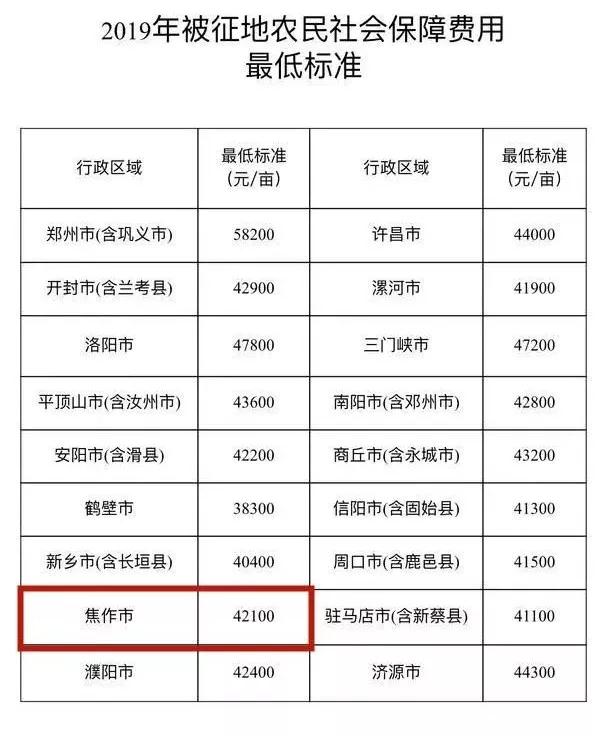 近日,河南省人力资源和社会保障厅下发《关于公布2019年被征地农民社会保障费用最低标准的通知》。根据《河南省人民政府关于调整河南省征地区片综合地价标准的通知》和《河南省人力资源和社会保障厅 河南省财政厅 河 ...