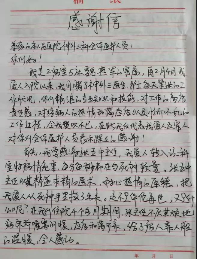 “如果没有张主任和薛主任的及时抢救,没有焦作市人民医院神外三区医护人员的精心照顾,我可能真的就不在了,是你们把我从死神手里救了出来。我们全家人都要感谢你们……”2019.7.11是患 ...