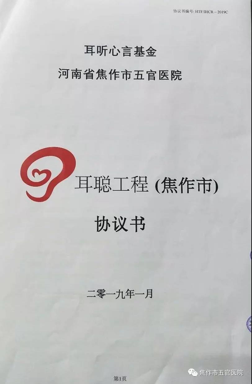 香港耳听心言基金再次联手焦作市五官医院 ——焦作市五官医院承办焦作市第二届“耳聪工程”慈善救助项目 “耳聪工程”是香港“耳听心言”基金(基金会主席为国 ...