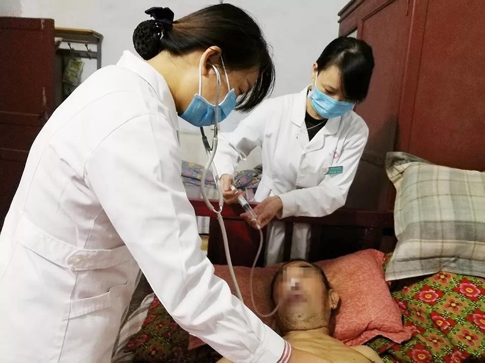 9月12日中午,温县二院外一病区护士长郑利芬和护士陆菲冒雨前往岳村街道方头村,为一位通过家庭医护平台预约医护服务的患者更换胃管。 达到之后,给老人做了 ...