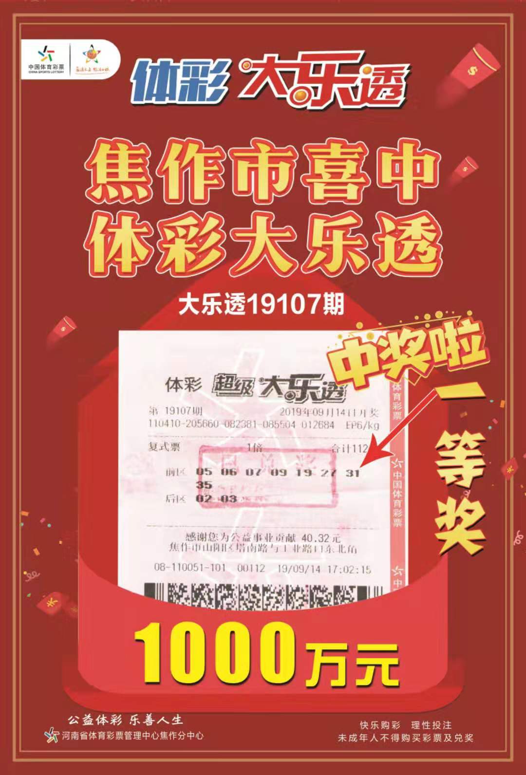 购买体彩,在做公益的同时,又能中大奖,这样的幸福果实被我市一购彩者摘得。记者昨日从体彩焦作分中心了解到,9月14日开奖的超级大乐透中,我市一购彩者喜中1005万元,该购彩者已领走了其奖金。 1000万元大奖花落我 ...