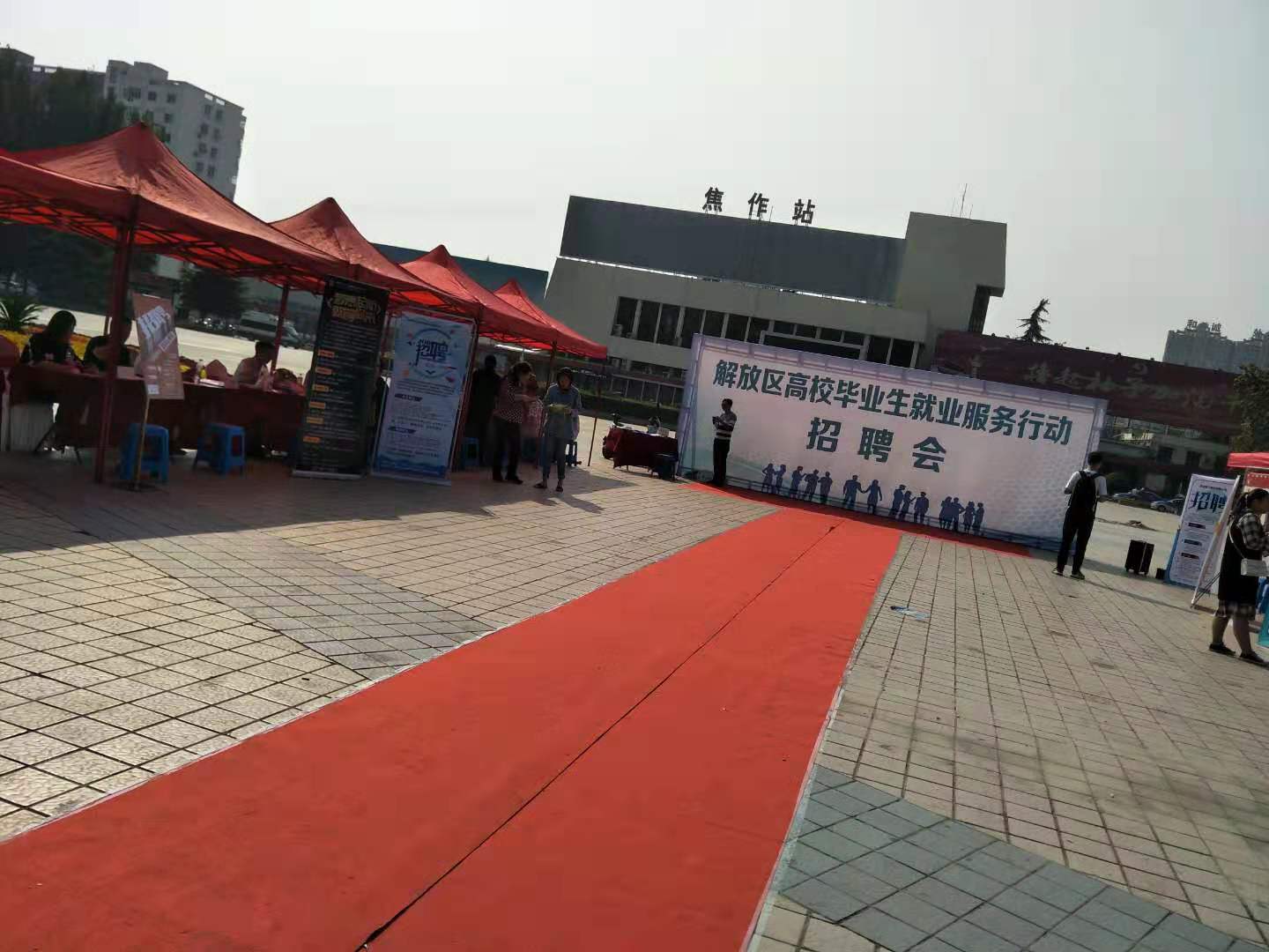 途径焦作火车站,看到几个红帐篷,走进凑热闹,原来是毕业生招聘会,招聘公司的人比求职者还多。