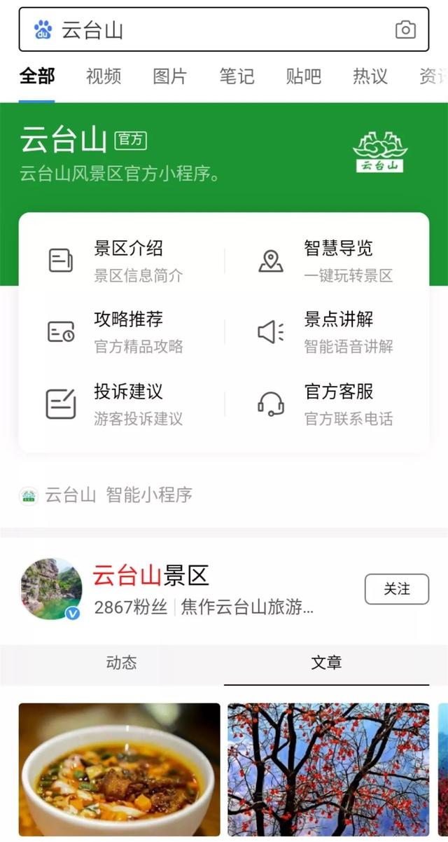 百度一下,一触即达!跟着小程序,畅游云台山。近日,由百度全力打造、河南—百度专属定制的全国首个5A景区智能小程序——“云台山景区”正式上线,致力于打造国内首个5A景区示范案例,助力旅游行业智慧转型,服务万 ...