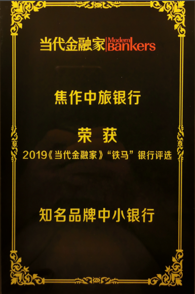焦作中旅银行荣获“铁马银行”——“知名品牌中小银行”大奖 11月1日,由苏宁金融旗下苏宁金融研究院、《当代金融家》杂志社、大成基金联合主办的“2019(第八届)中国中小银行发展高峰论坛”在南京召开。为表彰中小银 ...