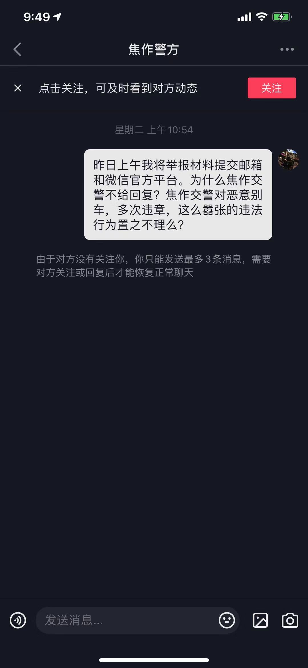 焦作交警. 发表于 2019-12-12 16:45 警察很辛苦,您的回复也很到位,举报者也不信任咱们人民警察是为人民的,至于那个公众号啊,最好还是加强管理,毕竟现在是网络时代了吗,咱们警察队伍也要跟上时代步伐。 |