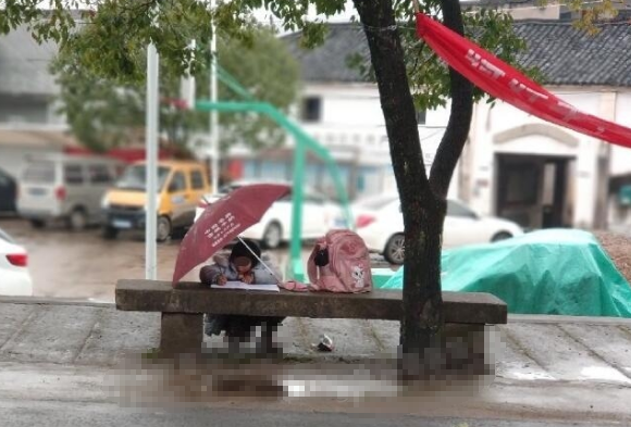 现在孩子压力这么大?焦作有学生冒雨做作业 ...