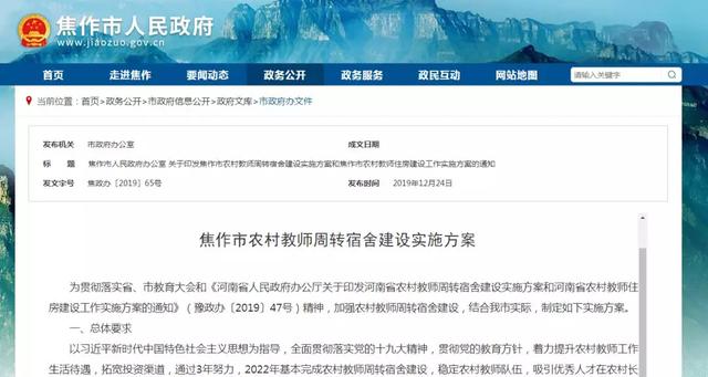 各县(市)区人民政府,市城乡一体化示范区管委会,市人民政府各部门,各有关单位: 《焦作市农村教师周转宿舍建设实施方案》和《焦作市农村教师住房建设工作实施方案》已经市政府同意,现印发给你们,请认真贯彻执 ...