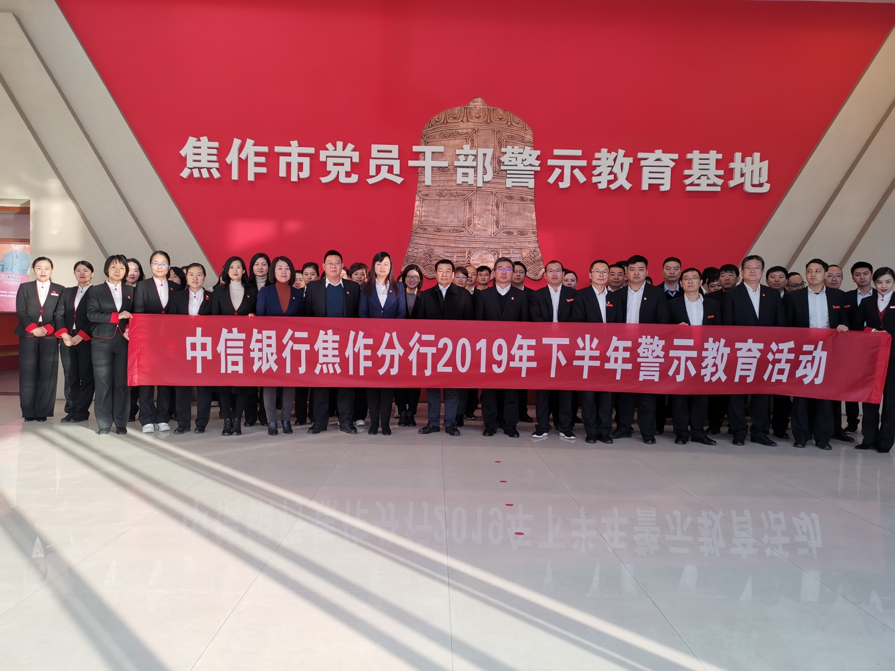 中信银行焦作分行开展2019年下半年警示教育 为加强全行员工廉洁从业意识、遵纪守法意识,做到知敬畏、守底线,12月19日,中信银行焦作分行在焦作市党员干部警示教育基地开展2019年下半年警示教育活动。焦作分行党委 ...