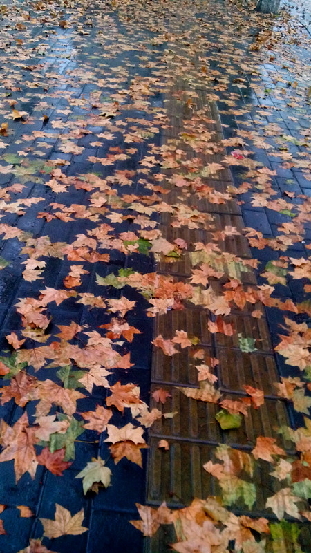 小雨淅沥下,梧桐残叶落