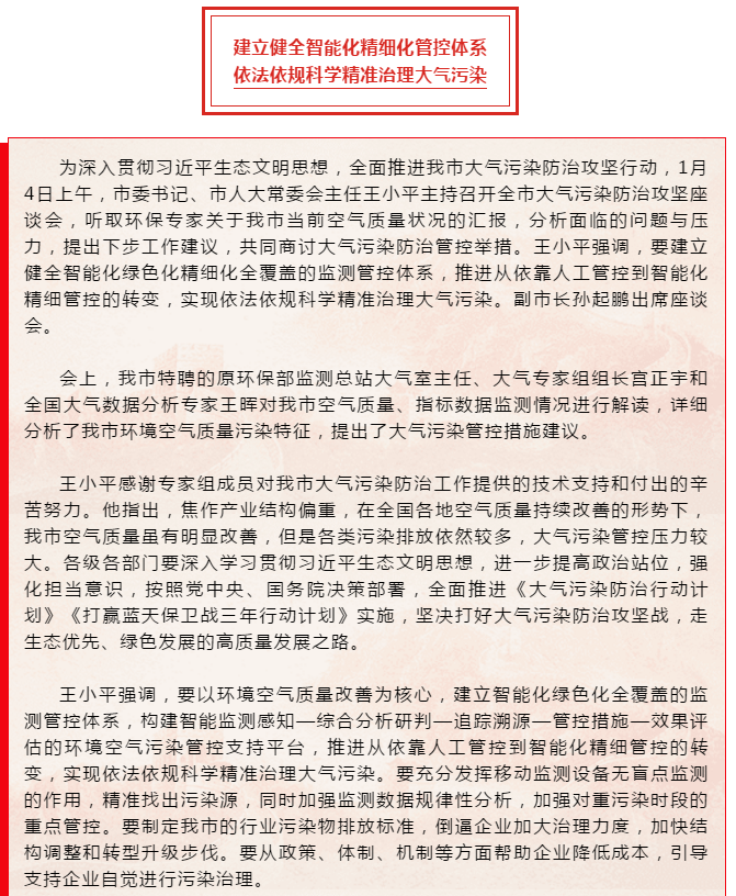 王小平主持召开全市大气污染防治攻坚座谈会 ...