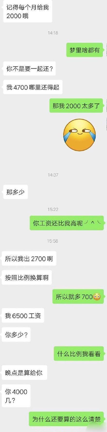 yyan1080 发表于 2020-1-10 10:58 对啊,我也觉得是这样!可以各让一步女的一个月给1500应该还是可以接受的 |