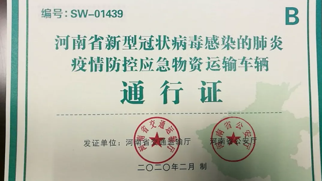 2月4日,河南省新型冠状病毒感染的肺炎疫情防控指挥部发布1号通告,决定实施疫情防控应急运输通行证制度,配发应急运输通行证——A证和B证。其中,B证适用于省内应对疫情各类应急物资、生活物资、重点生产物资的运 ...