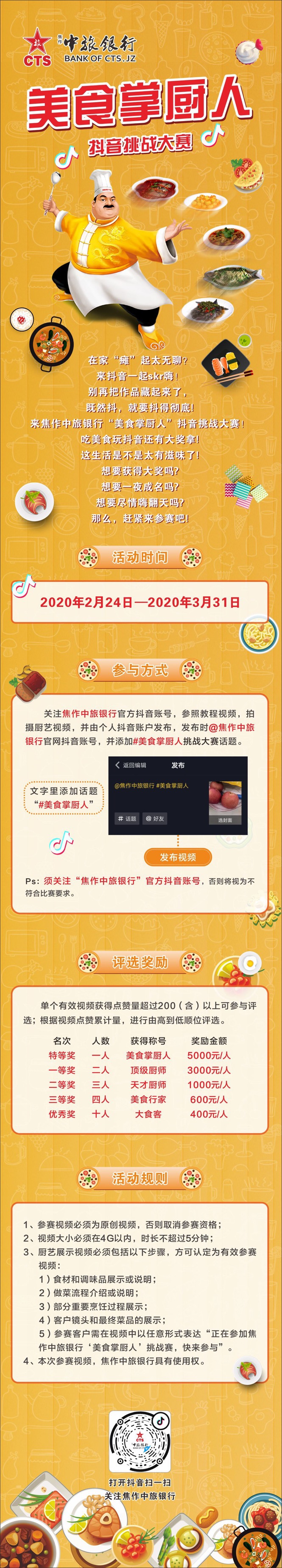 5000元大奖! 焦作中旅银行“美食掌厨人”抖音挑战大赛! 等你来战! 您的设备不支持视频标签。