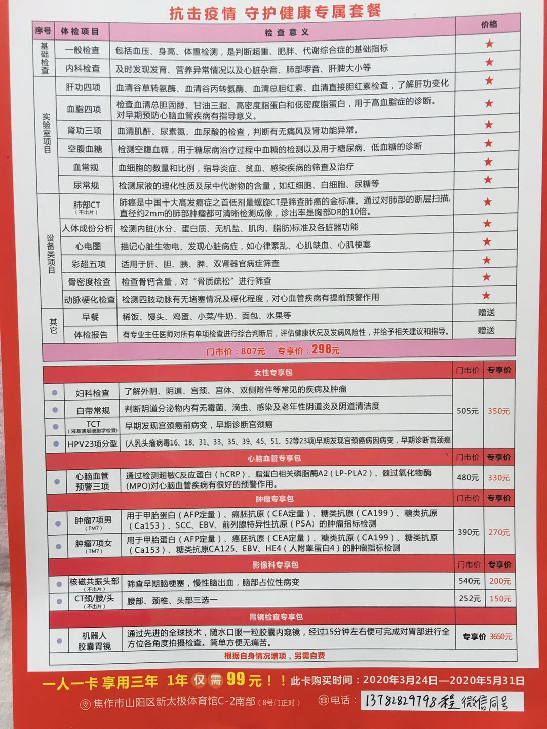 焦作慈铭体检是美年大健康集团旗下中高端品牌,全国连锁上市公司,设备齐全,环境优美,交通便利,为回馈广大客户,开业期间大酬宾,办理体检套餐均有优惠,部分体检套餐可享受三年免费体检,欢迎团体个人预约订购, ...