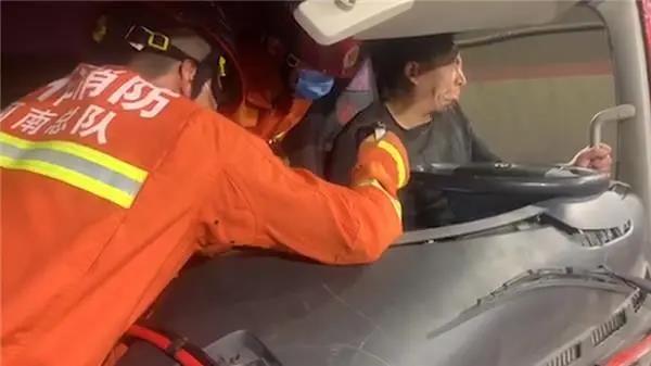 到达现场后发现被困者是一名半挂车司机,腿部被卡在驾驶室。指挥员迅速下达命令,一组救援人员负责与高速交警配合现场警戒,禁止无关人员进入作业区内;另一组救援人员对被困人员进行救援,利用破拆器材对车体进 ...