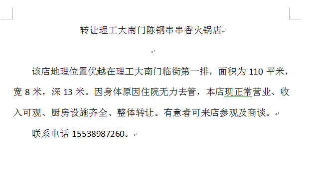 转让理工大南门陈钢串串香火锅店