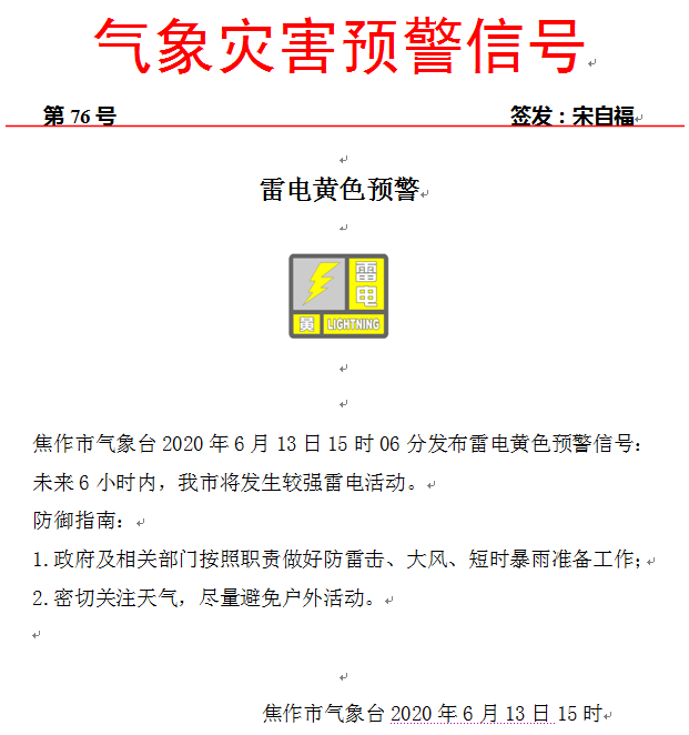 焦作市气象台发布雷电黄色预警 狂风暴雨马上袭击焦作!焦作人,赶快回家吧……