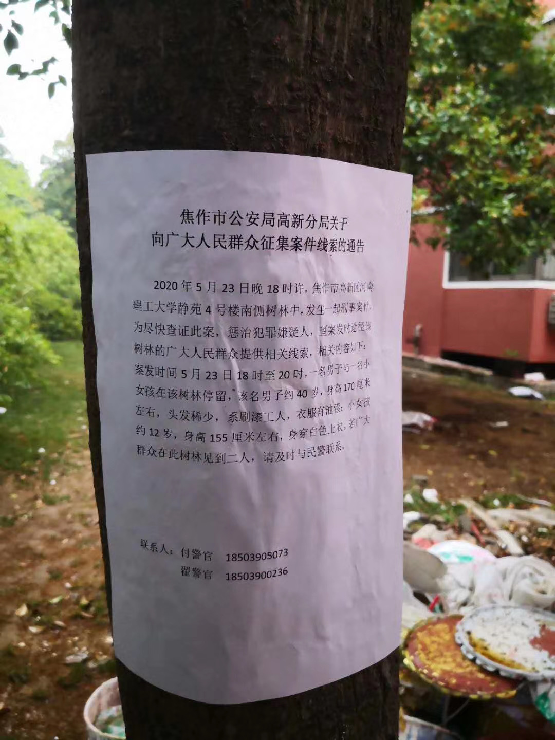 网友拍摄:焦作市公安局高新分局张贴刑事案件征集线索通告
