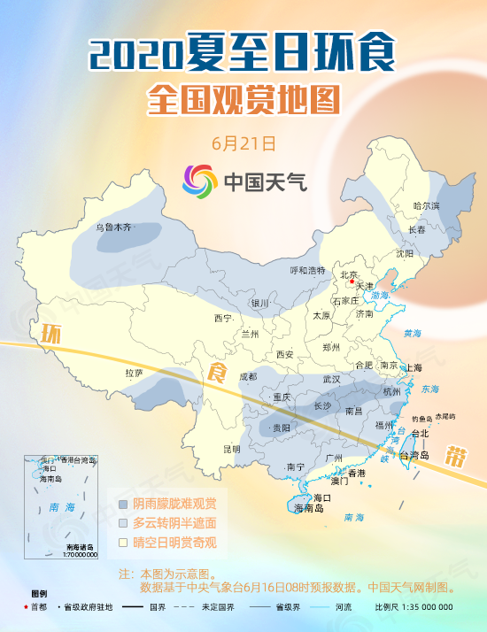 夏至当天(6月21日),一场“超级日环食”将震撼登场,幸运的是这次天象在我国很多地区都可以观测到,错过这次要再等10年。全国各地天气如何?是否适宜观赏奇观? 中国天气网推出全国日环食观赏地图,快来看看哪里宜 ...