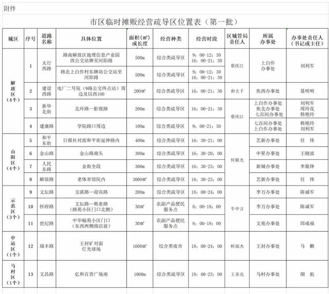 焦作城管6月22日发布:为支持地摊经济发展,焦作城区第一批13处路段可以摆摊,允许临街店铺临时越门经营、允许流动商贩贩卖经营。 ...