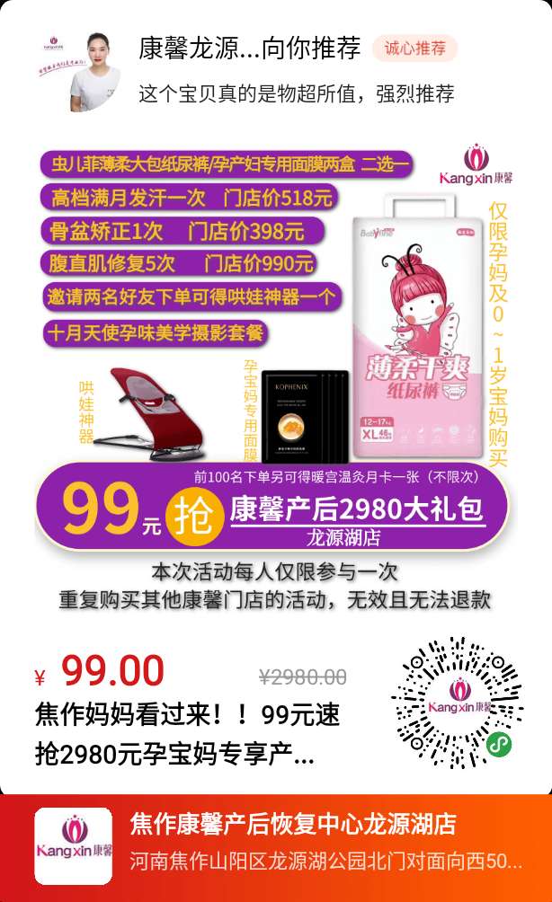 找到我不迷路康馨产后邀你检验服务品质!99元抢购2980元超值大礼包数量有限,极速抢购。