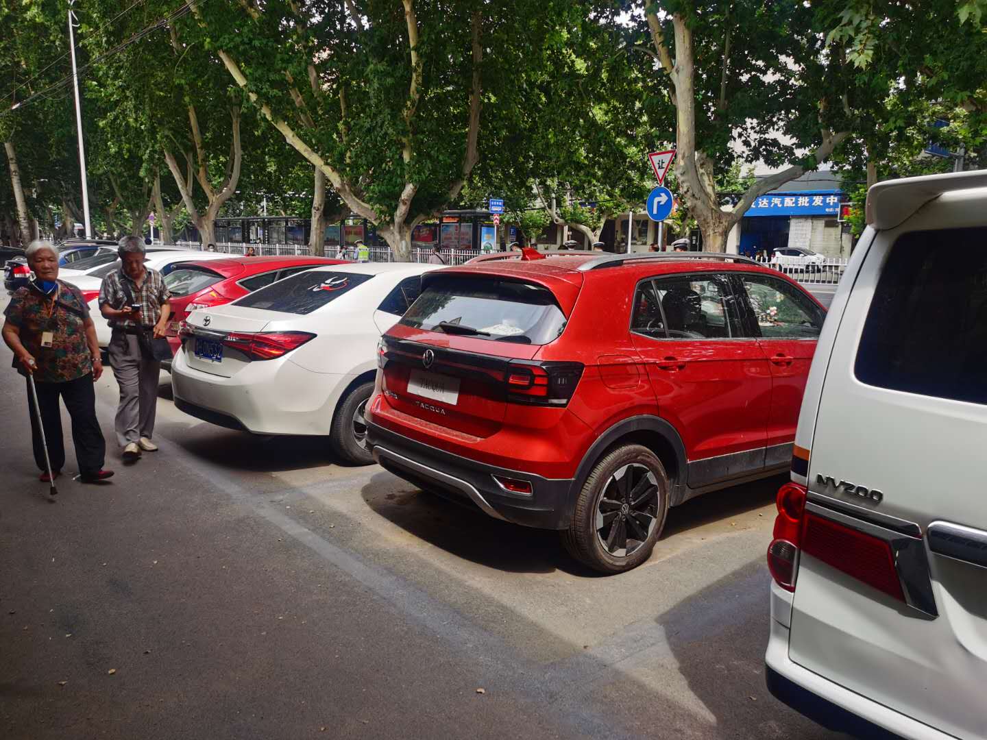 路边门面前经常停一排机动车,其中一些停放有月余没有动过 附近充值公交卡的老年人和上下学的小学生非常多,安全存在很多隐患
