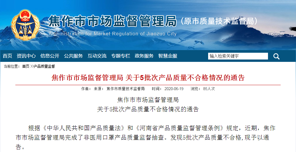 曝光!焦作这5家公司生产口罩不合格被查处! ...