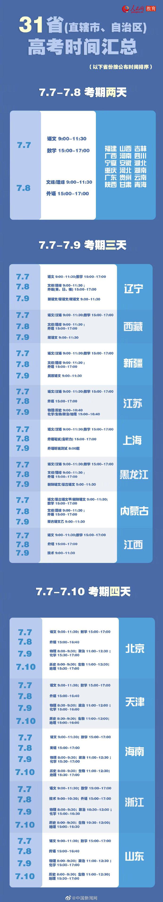 2020高考倒计时2天,这里有一份31省区市高考时间、科目汇总,请各位考生查收,愿每一份努力都不被辜负,祝各位考生金榜题名,马到成功,2020,高考加油加油! ...