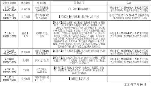 为了保障焦作电网安全稳定运行,为您提供可靠的电力供应,我们将对焦作电网以下线路进行计划检修,请广大客户及时作好停电准备,提前或延时送电不再另行通知。如遇天气变化、保供电等特 ...