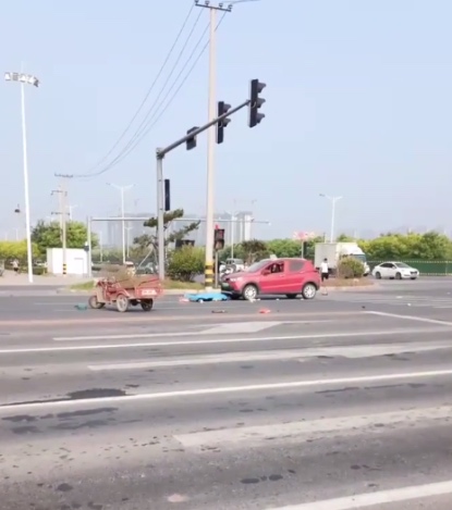 刚刚,焦作中原路和世纪路红绿灯处发生车祸,一辆红色轿车与三轮车发生相撞,三轮车车主当场死亡,人已被盖上了蓝布。目前警方正在现场调查事故的原因...... 您的设备不支持视频标签。 ...