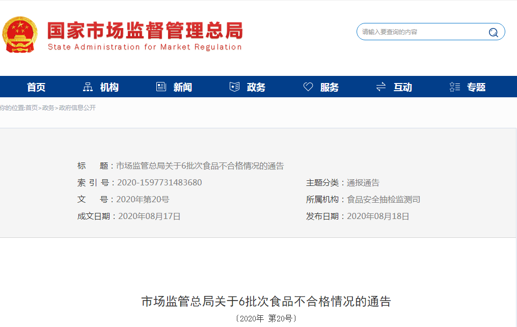 这些食品,不合格! 近日国家市场监管总局发布了关于6批次食品不合格情况的通告涉及糕点、炒货食品、坚果制品等多品类这些不合格食品在多家电商店铺有售快来看看你中招了吗 近期,市场监管总局组织食品安全监督抽 ...
